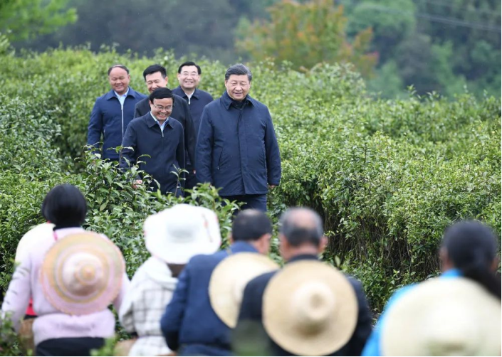2020年4月21日,习近平来到陕西省安康市平利县老县镇,在茶园考察脱贫攻坚情况。新华社记者 燕雁 摄
