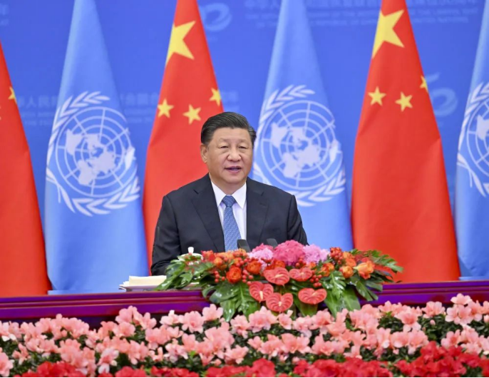 2021年10月25日,习近平在北京出席中华人民共和国恢复联合国合法席位50周年纪念会议并发表重要讲话。新华社记者 李学仁 摄