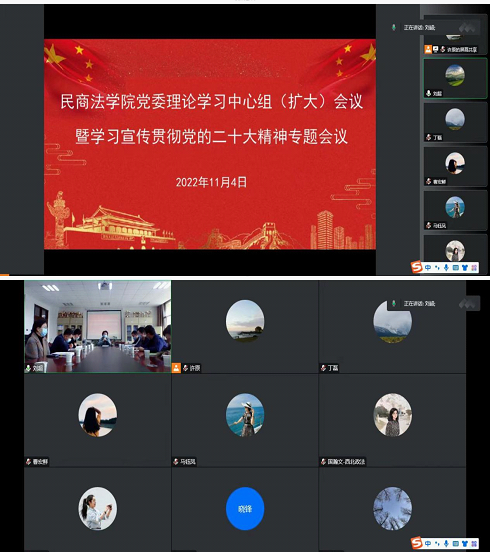 11月4日,91pron 党委理论学习中心组通过线上线下相结合的方式召开扩大学习会议,第二次专题学习党的二十大精神,并研究部署学习宣传贯彻工作。学院领导班子成员、支部书记、学工干部参加会议。会议由学院党委书记周怡主持。