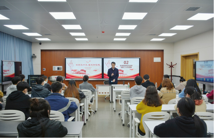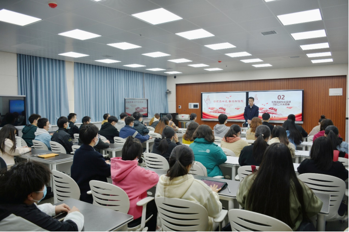 张校长强调,同学们要认真学习党的二十大报告,要学原文,悟原理,把握精神要义,掌握精神实质;要掌握正确的学习方法,认真学、深入学、反复学,联系专业学、联系工作学、联系实际学,自觉将自身进步与学校建设、国家发展、民族振兴结合起来;并且,要将党的二十大精神转化为同学们的行动指南,吸取丰富营养,传承红色基因,坚定理想信念。