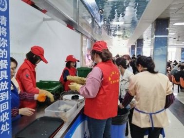 在活动过程中,服务队志愿者们恪尽职守,以认真负责的态度帮助收餐台食堂员工回收饭后餐具,并将多余的食物残余倒入厨余垃圾桶之中。看到垃圾桶内渐增的厨余垃圾,志愿者们更加坚定了“光盘”的决心。并表示浪费不易量小而为之,我们每位学生都应该敬畏粮食,按需用餐,养成节约粮食、珍惜粮食的习惯。