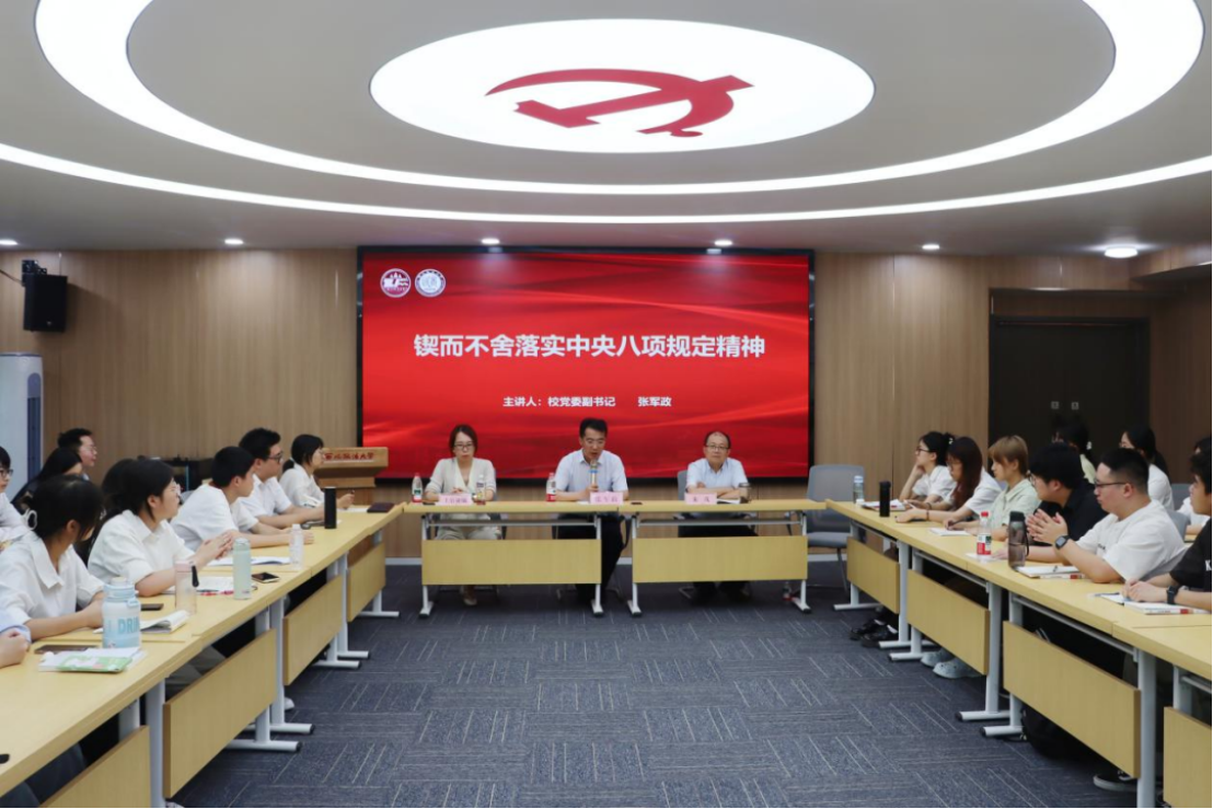 6月12日,91pron 党委组织入党积极分子开展深入贯彻中央八项规定精神学习教育专题党课学习,校党委副书记张军政以《锲而不舍落实中央八项规定精神》为题讲授专题党课。