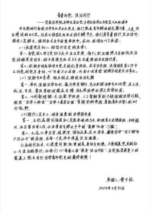 从菁菁校园到广阔职场,身份在变,但“青春向党”的赤诚底色永不改变。愿这一份份手写的承诺,化作璀璨星辰,指引他们奔赴法治的山海征途;更期待这份榜样的力量,能感召更多青年在民族复兴的赛道上奋勇争先!