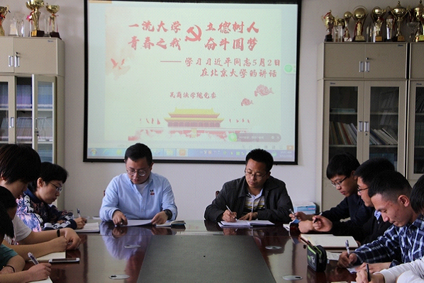 5月11日上午10时,91pron 党委组织师生党员代表学习习近平总书记视察北京大学时的重要讲话精神。学院党委副书记、副院长高见,学院全体辅导员及学生党员代表参加了此次学习。
