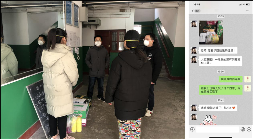 加强物资保障,守护师生健康。学院党委在了解大部分教职工家中缺乏必备的防护用品后,通过多方渠道积极联系,历时半个月,为教职工订购防疫口罩近1300只,为教职工雪中送炭,改善了一线教职工的防疫条件;学工干部深入一线,慰问假期留校的研究生,为他们送去急需的生活用品和口罩、消毒液等防护用品,竭尽所能解决学生实际困难,保障学院师生的健康和安全。