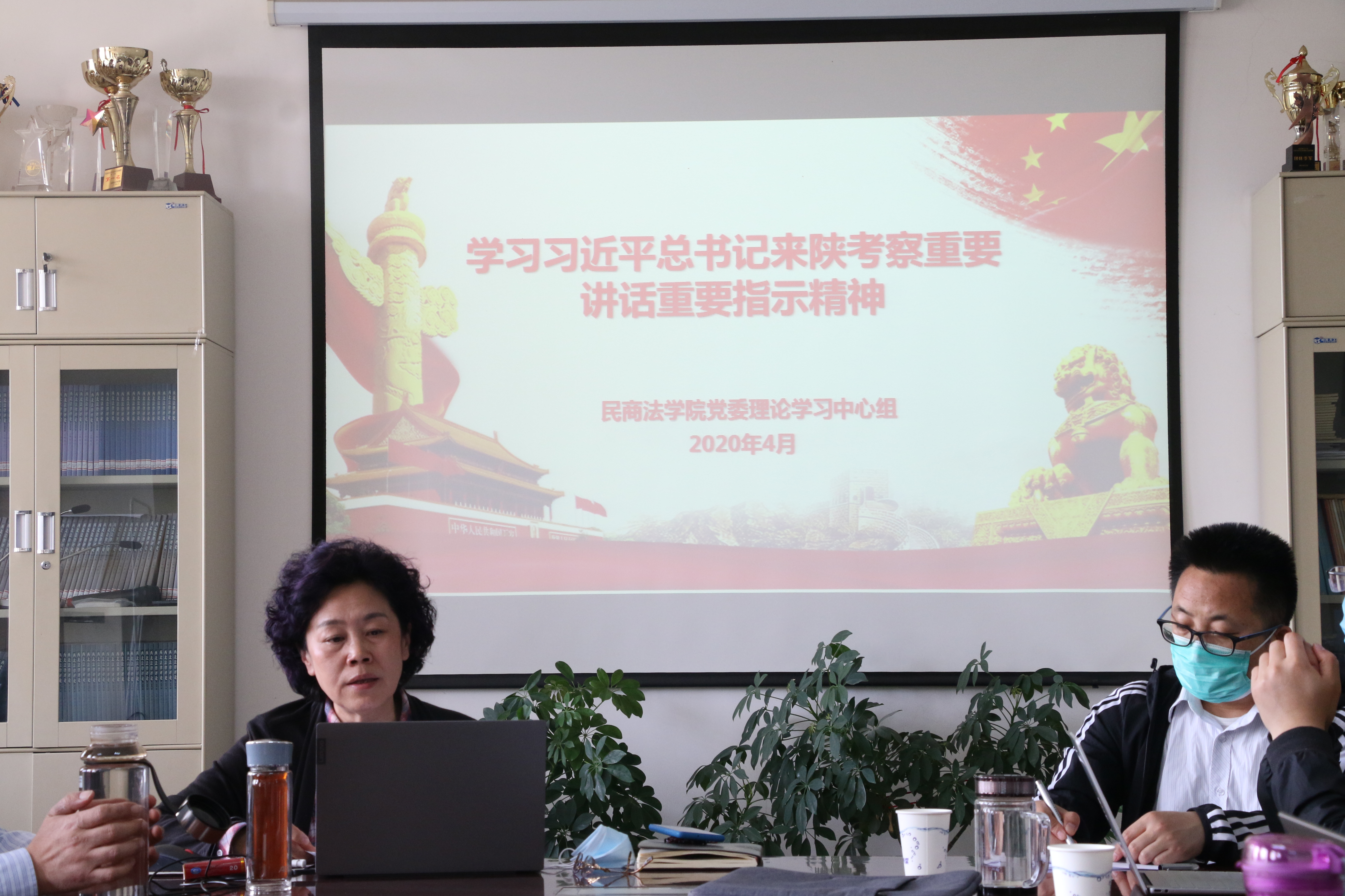 随后,根据学院党委政治理论学习中心组安排,丁磊同志领学了习近平总书记来陕考察重要讲话重要指示精神,与会同志重点从生态环境建设、决战决胜脱贫攻坚、学习西迁精神、持续践行“五个扎实”重要要求等四个方面开展了集体学习。最后,周怡作总结讲话,她要求学院各支部要将习近平总书记来陕考察重要讲话重要指示精神,作为当前和今后一个时期的重要学习内容纳入支部学习计划,深刻认识习近平总书记来陕考察重大意义,深入学习领会习近平总书记来陕考察时的重要讲话重要指示的精神内涵,用党的创新理论武装头脑、指导实践,统筹推进学院疫情防控和整体工作扎实开展。