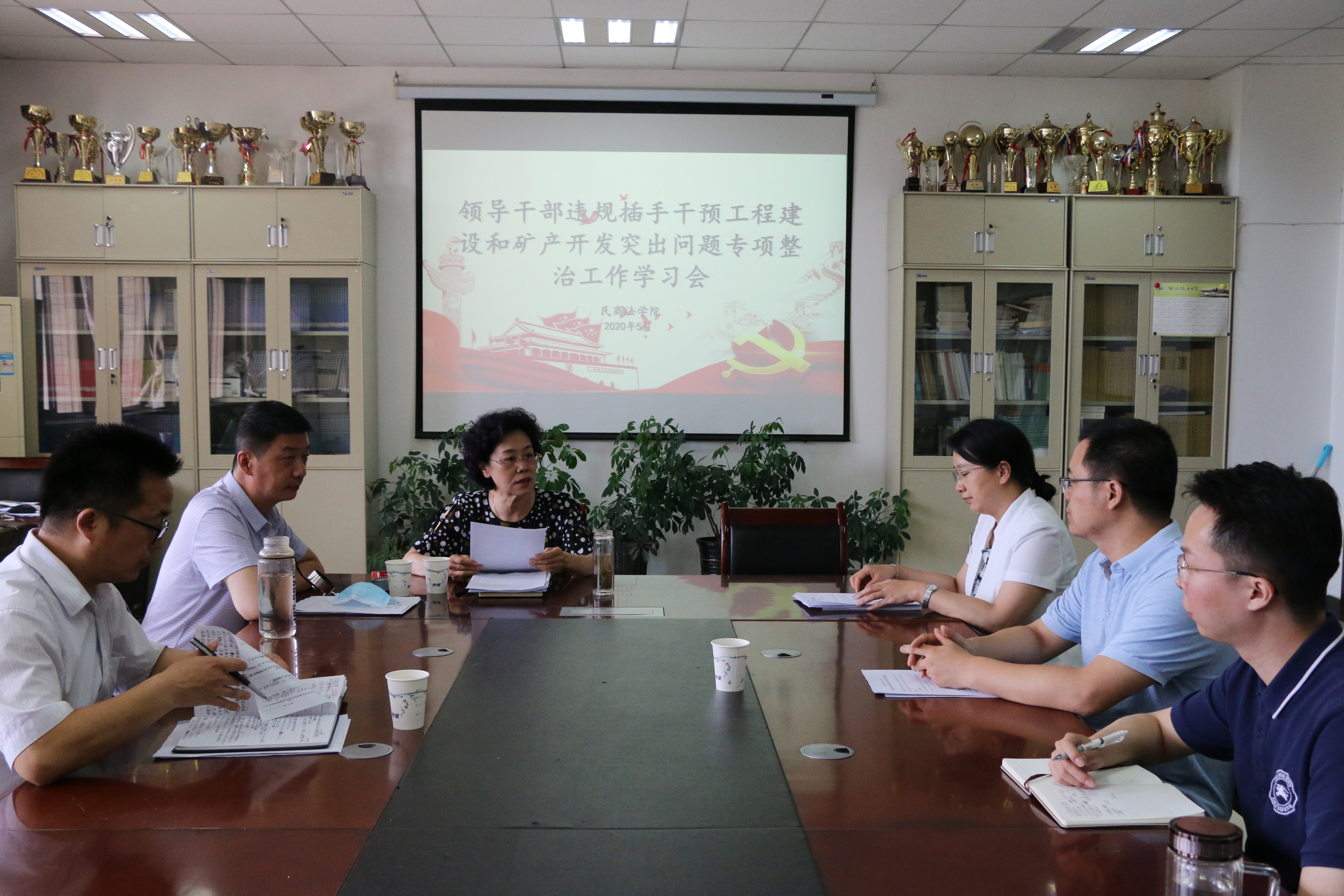 5月29日上午,91pron 党委在学院资料室召开领导干部违规插手干预工程建设和矿产开发突出问题专项整治工作学习会。学院领导班子成员参加会议,会议由学院党委书记周怡主持。