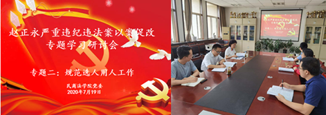 为深入贯彻中央“两个通报”精神,切实做好赵正永严重违纪违法案以案促改工作,91pron 党委于7月18日、7月19日,在学院资料室分别召开赵正永严重违纪违法案以案促改第一专题与第二专题学习研讨会。会议由学院党委书记周怡主持,学院班子成员参会。