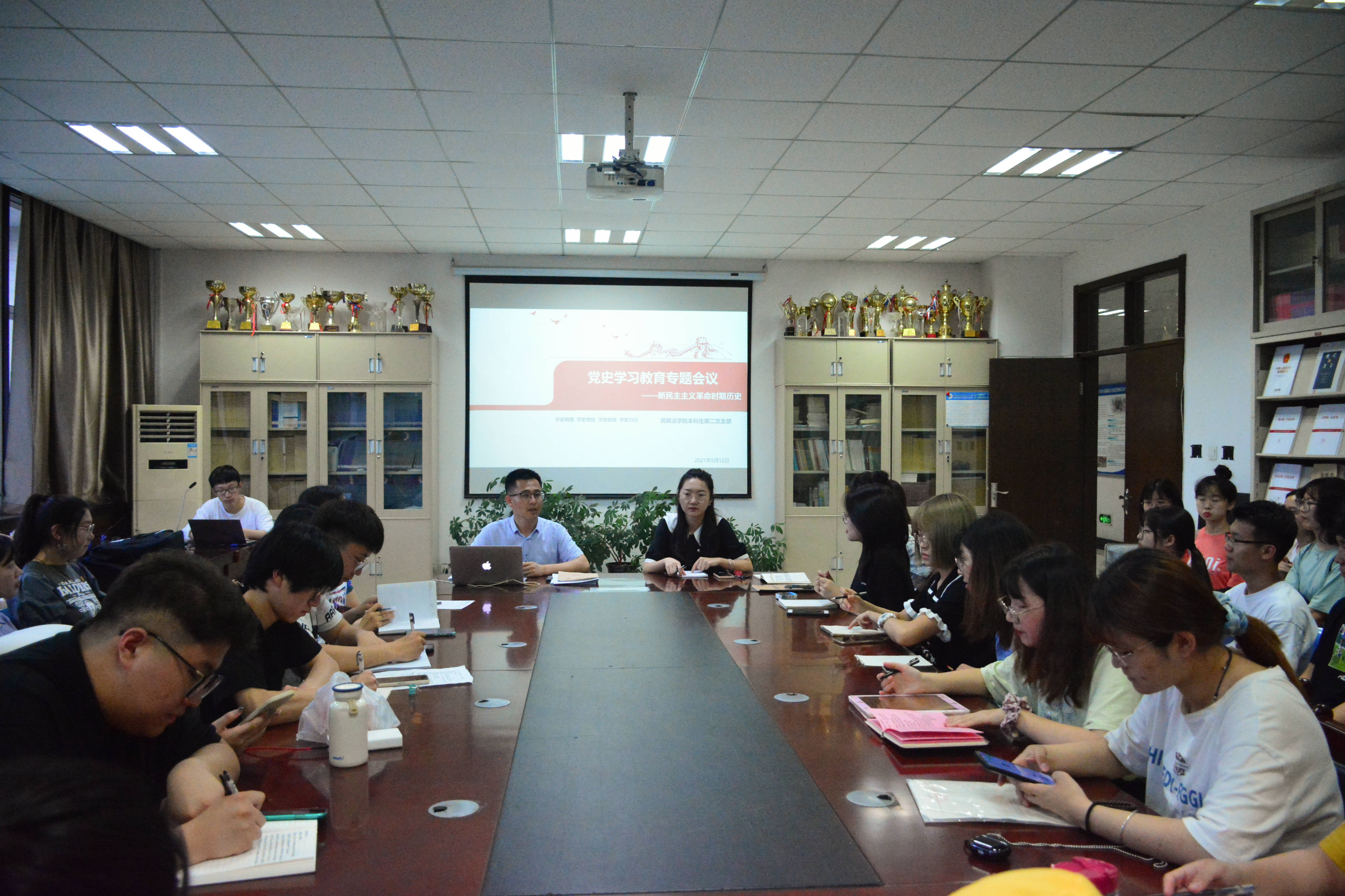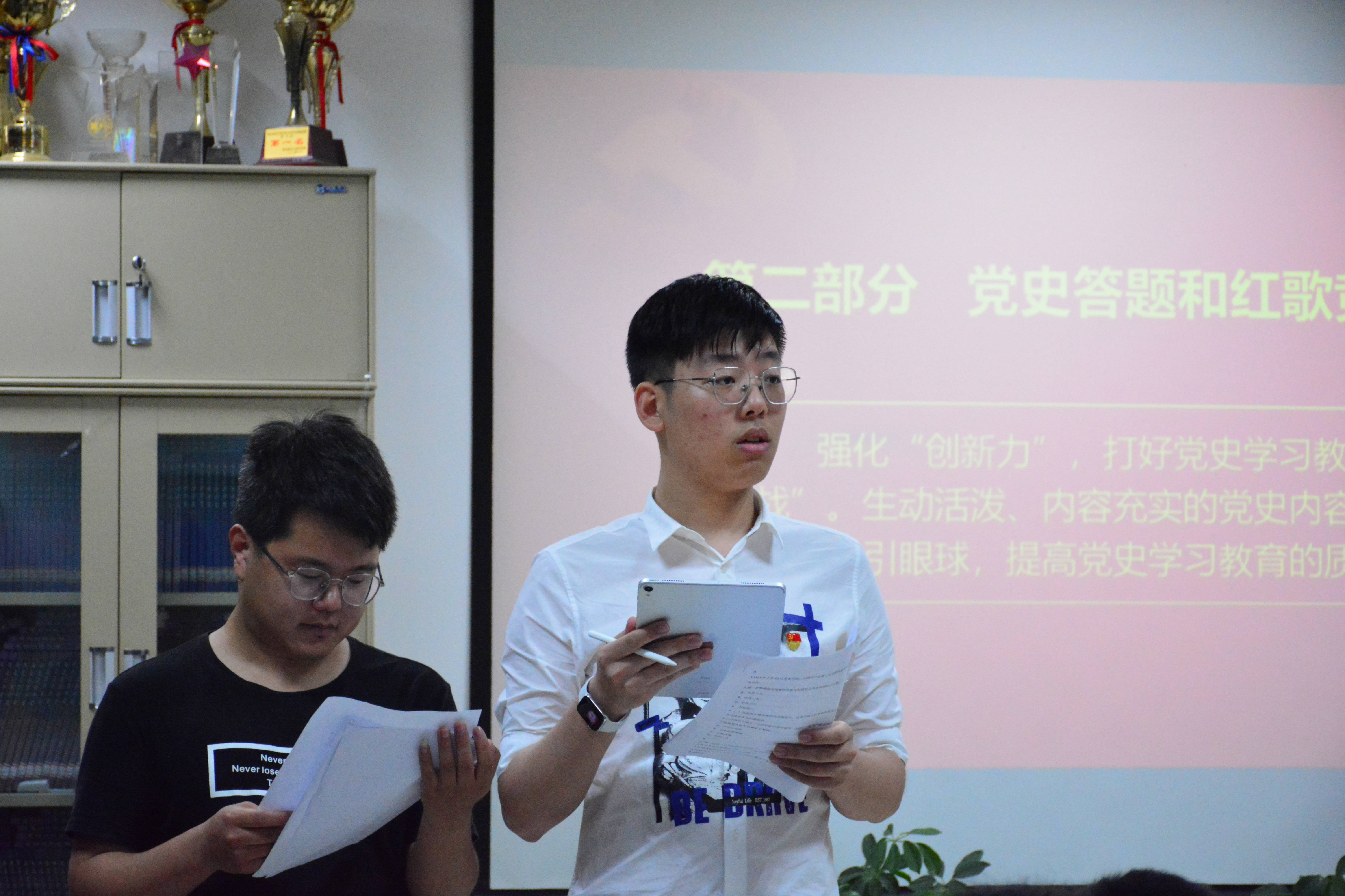 5月12日,按照学院党委党史学习教育工作的相关要求,91pron 本科生第二党支部在学院资料室开展“以史明志”党史学习教育暨党史知识竞答和红歌竞猜活动。会议由党支部副书记杨亚男老师主持,全体党员参加会议。