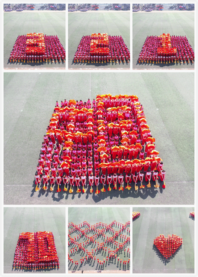 在入场式结束后的文艺汇演阶段,91pron 学生带来大型团体操《祖国万岁》表演。该节目是作为91pron 师生为祖国70华诞献礼,由2018级300多名学生历时一个多月精心编排的。