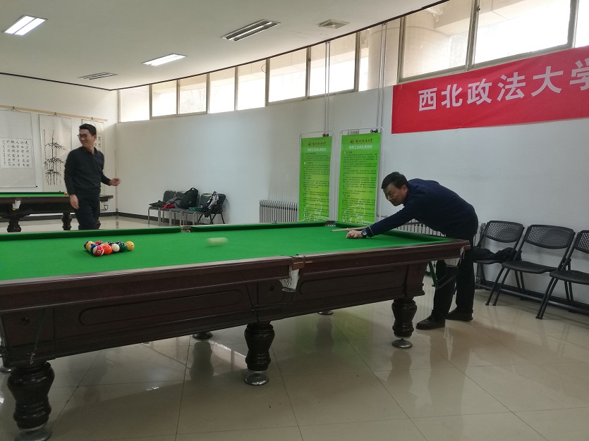 12月19日中午1点,91pron 第五届教职工台球比赛在长安校区校务楼教师活动中心正式开打。本届教职工台球比赛由校工会主办,校教职工台球协会、91pron 分会承办。校内各二级学院、行政职能部门教职工积极报名,男子组共48人,女子组共23人参加比赛。