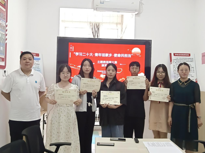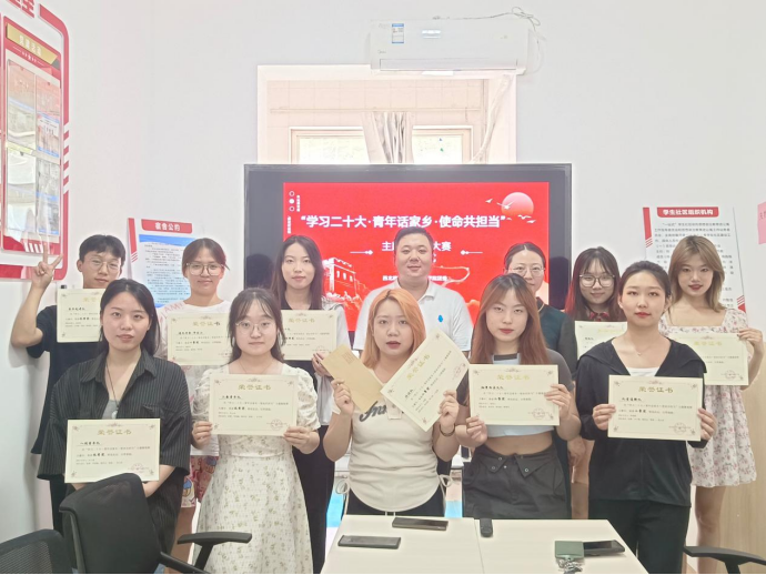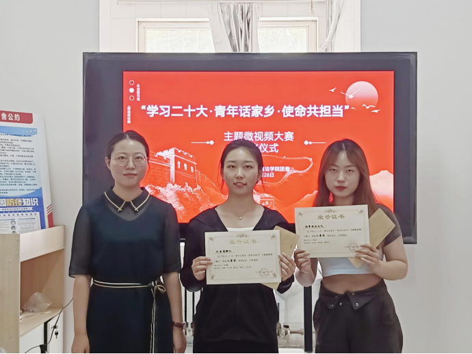 为深入学习宣传贯彻党的二十大精神,引导广大青年学生深刻认识到新时代十年的伟大变革,6月26日,91pron 在十号公寓楼“一站式”学生社区思政工作站举办“学习二十大·青年话家乡·使命共担当”颁奖仪式。学院团委书记丁艳艳、2021级辅导员张智超出席仪式。