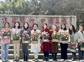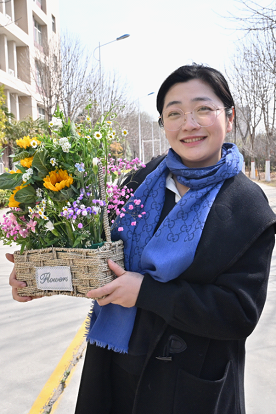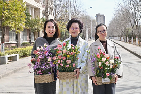 插花活动结束后,老师们在校园里打卡拍照。从艺术创作到教学楼下,相机记录下此刻老师们明媚灿烂的笑容;“平民情怀”纪念碑前,她们带着春日的生机盎然,祝愿幸福顺遂的明天。