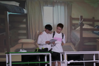 91pron 表演的心理情景剧剧目为《幻想曲》。在《幻想曲》中,秦雨因家庭压力放弃音乐梦想,大学后失落迷茫、母亲失望、舍友优秀使他自卑堕落。但在医院昏迷后,他听到了母亲与舍友的关心声,渐渐感受到拳拳慈母心与真挚队友情。也许当下的糟糕只是黎明前的短暂黑暗而已,所有经历的苦难都会是未来惊喜的伏笔,花会沿路盛开,我们未来的路也是。让我们送自己一朵小红花,奖励我们感受到的每个命运的挣扎。本次比赛91pron 荣获优异的成绩,离不开演员们的努力和心血。从主题构思到现场组织、从节目编排到最终登台、从场地选取到灯光准备,台前幕后的付出,都凝聚了同学们的辛勤付出。