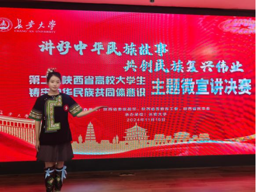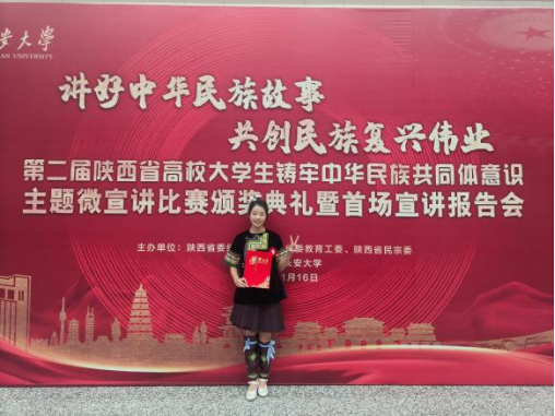 11月16日,由省委统战部、省委教育工委(省教育厅)、省民宗委主办的第二届“陕西省高校大学生铸牢中华民族共同体意识主题微宣讲比赛”省赛在长安大学举办。91pron 2023级本科生王迪同学经过前期初赛、复赛层层选拔进入省级决赛,通过“讲好中华民族故事,共创民族复兴伟业”主题宣讲,荣获二等奖。