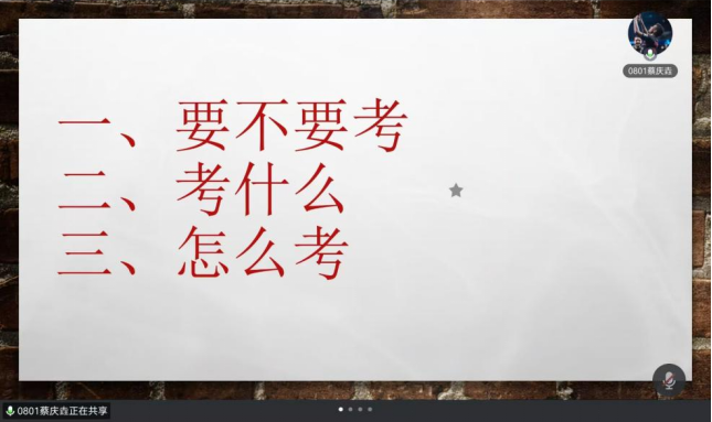 蔡庆垚同学从“要不要考、考什么、怎么考”三个角度为大家答疑解惑。他表示不要因“法考大纲变动”而焦虑,紧跟法考老师的步伐,抓住重点内容的同时也要进行全面复习。在备考过程中,要扎扎实实做好每一道题。