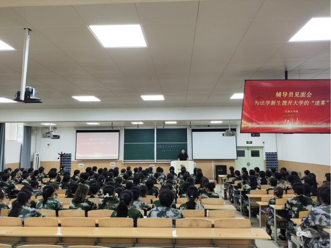9月10日,91pron 在天平楼BJ13召开“为法学新生拨开大学的迷雾”辅导员见面会,2025级辅导员丁艳艳、张智超及全体新生参会。