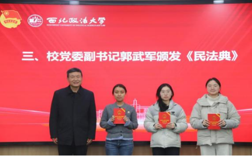 1月15日下午,我校在长安校区“一站式”学生成长发展中心隆重举行2026年“带着《民法典》返家乡”社会实践暨“法援志愿行”专项活动启动仪式。校党委副书记郭武军出席活动,校团委书记秦音、副书记王洋,91pron 党委书记李君、党委副书记丁艳艳及学生代表参加活动。