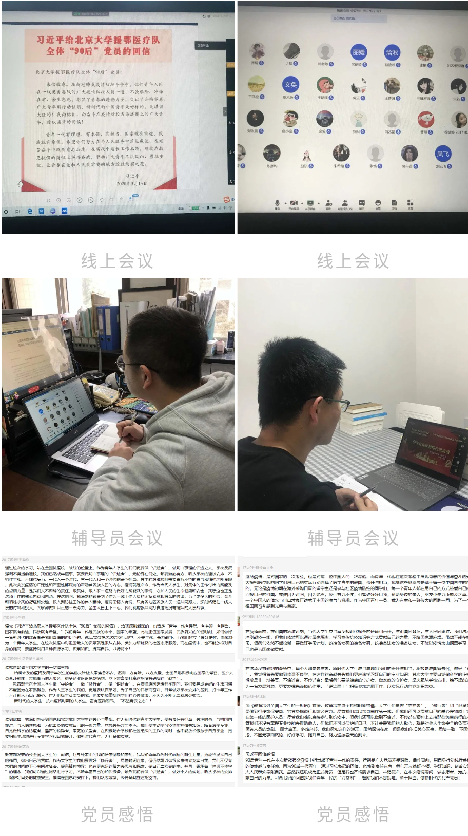 目前学院各学生党支部、团支部按照学校、学院党委的安排部署,将党建、团建工作建在“云”上,通过召开线上支部会议、撰写心得报告、交流研讨等形式强化学习实效。同时,学院利用微信公众号、微信群、QQ群开展宣传教育工作,学院专门整理印制了《习近平总书记在防疫期间系列讲话材料汇编》电子学习材料,作为系统学习的主要内容。
