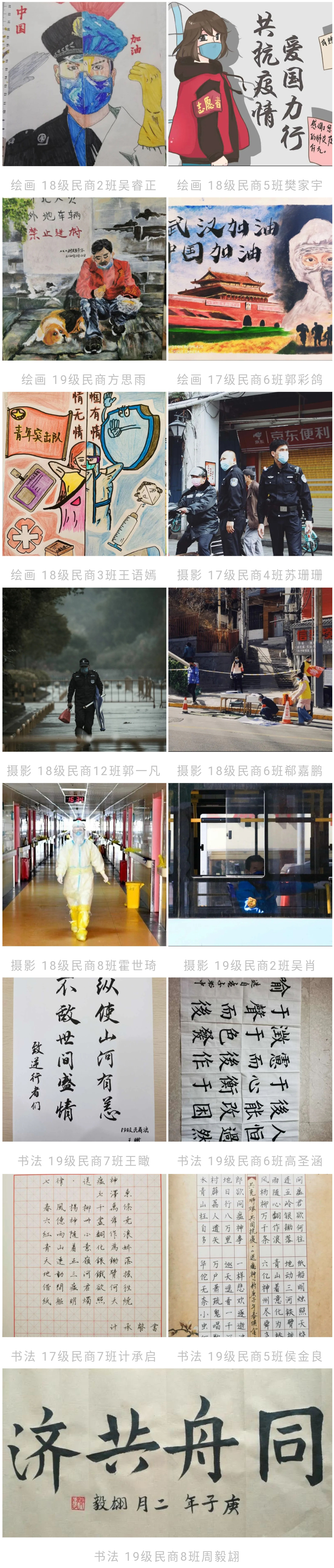 学院紧密围绕当前教育实践的主要任务,在线上课程、课题申报、双创项目等方面向抗疫主题靠拢,并且围绕教育部组织的“共抗疫情、爱国力行”主题开展宣传教育活动,在学院内征集优秀的书法、绘画、摄影作品予以宣传,扩大教育的形式与载体。今年学院还将通过暑期社会实践、优秀论文、学生科研项目等形式进一步夯实爱国主义的教育效果,以实际行动做好时代“收信人”。