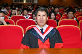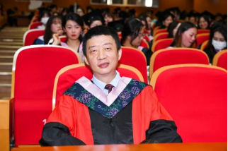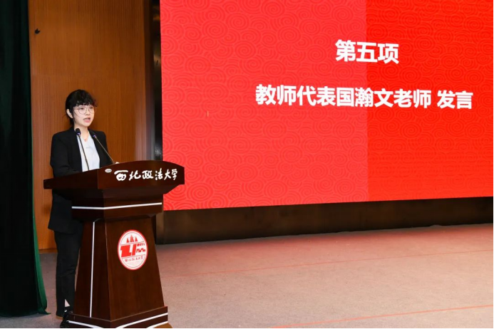 仪式第五项,国瀚文老师代表91pron 教师寄语毕业同学。国老师既表达了临别之际91pron 各位领导老师对于毕业同学的不舍与关心,也以“匠心守护本心,本心守护初心”为内容对在场同学进行了叮嘱与激励。国老师强调,民商法学是普世济民、经世济邦的学问,作为91pron 学子,应当牢记四年所学的法学基础理论与知识框架,学以致用,积极承担责任,为国家与社会的法治撑起一片蓝天。