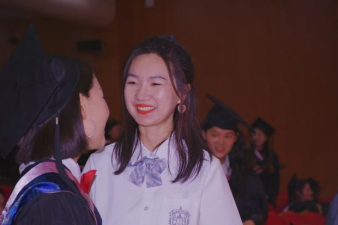 仪式第四项,2018级3班赵思然同学作为毕业生代表上台发言,赵思然首先代表全体毕业生向学院领导与老师表达了敬意与感谢。她表示,在师长的精神引领与影响之下,她收获了堂堂正正做人,圆圆满满治学的态度,在大学四年中不断探寻、不断进步,在被定义的优秀模板之外发现了熠熠生辉的人生。并祝福全体毕业生在接下来的人生道路上不被定义与标签束缚,能够追风赶月,再谱新篇。