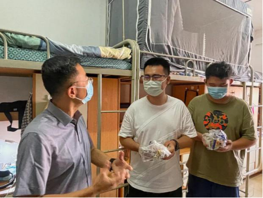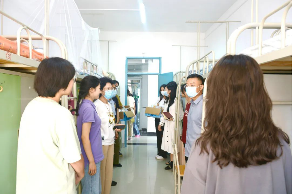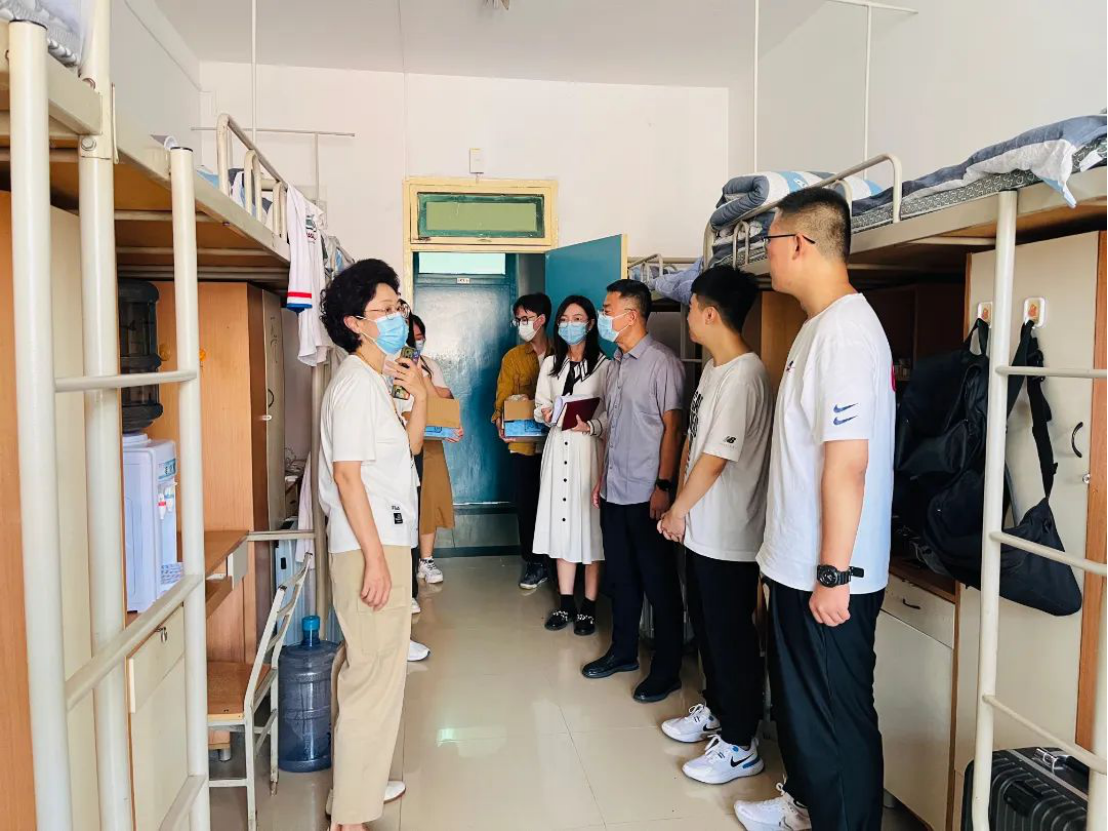每逢佳节倍思亲,9月10日是2022级新生入校后的第一个中秋节。为使新生感受到学院的浓浓温情,增进师生之间的交流,9月9日上午,91pron 党委书记周怡老师、民商副院长凤建军老师、党委副书记刘超老师和2022级辅导员杨亚男老师一同前往学生公寓亲切看望慰问新生,为新生送上一份温暖与祝福。