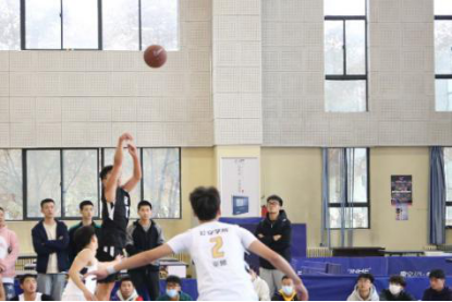下半场比赛伊始,双方互不相让,将比赛推至高潮。对方接连进球,我方球员毫不气馁,防守兼顾,沉着应对。18号球员马高旭以一个二分球打破僵局,大涨士气。队长那尔斯冷静指挥,我方球员运球、防守、拦截,动作有条不紊。场外观众为场上球员摇旗呐喊的加油声此起彼伏,振奋人心。随后我方多次投进罚球,无奈时间紧迫,我方最终以58:36的比分惜败于公安学院。