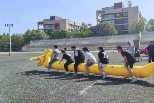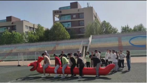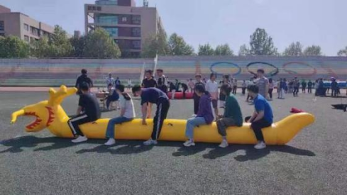 与此同时,旱地龙舟的号子声也吸引着场边观众的注意。选手们以12人为一组,双手紧抓把手,谨防道具中途掉落。91pron 队员们按照赛前安排,协调配合,在跑道上奋力奔跑,以速度彰显青春活力,用激情展现魅力风采。