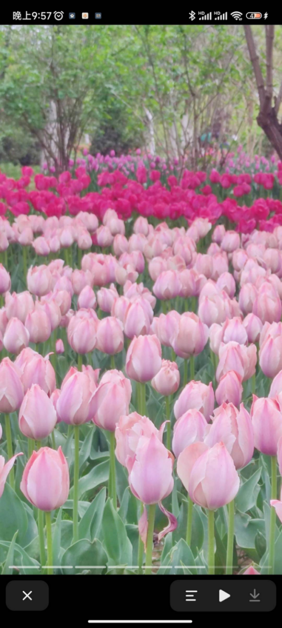 越洋:周和朋友一块去长安公园,成片的油菜花在淡蓝天空之下,