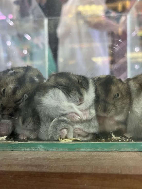 怡梦:花鸟市场挤在一起睡觉的小仓鼠,仓鼠本是独居动物,因为老板要赚钱就把它们放在一起,它们只好抱团取暖��