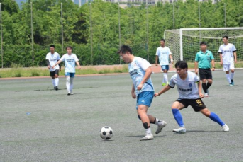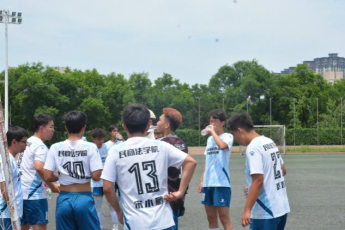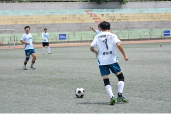 下午1时40分,下半场比赛开始。我方球员开局积极配合,多次打门。双方球员攻势猛烈,比赛进入白热化阶段。7号球员刘琦率先踢出一记角球。1号球员黄信杰以一记弧线球创造先机,无奈与进球失之交臂。终场哨声吹响,我方以0:1惜败。