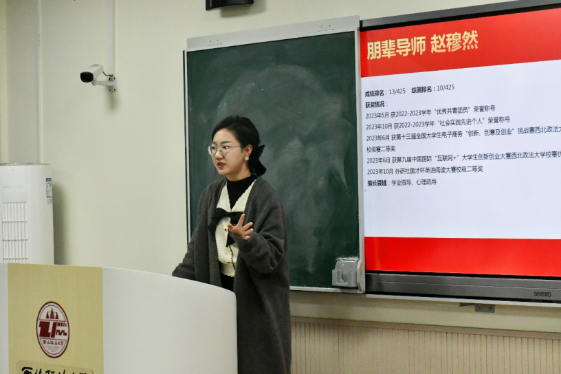 为帮助2023级新生明晰人生方向,合理规划大学生活。91pron 充分发挥优秀学生在思想引领、学业实践等方面的榜样示范作用,于11月15日17:00在致知楼305教室开展第一期朋辈互助分享会活动。2023级本科生辅导员刘洋、2023级本科部分新生代表参会,会议由“知行”朋辈导师工作坊指导老师杨亚男主持,朋辈导师林煜翔、保姝羽、赵穆然同学做交流分享。