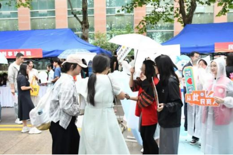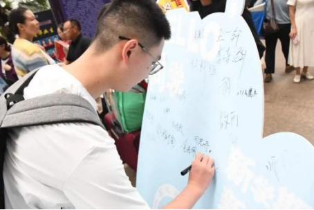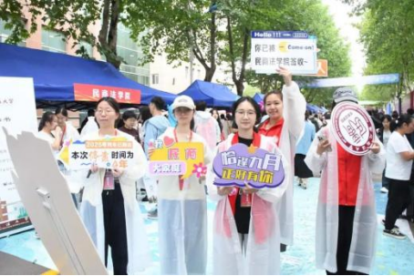 学长学姐坐在咨询台后,细致解答专业疑问:“法律是守护社会公平的‘基石’,期待你在这里找到热爱。”温柔的话语,让新生对未来的学习多了份笃定。