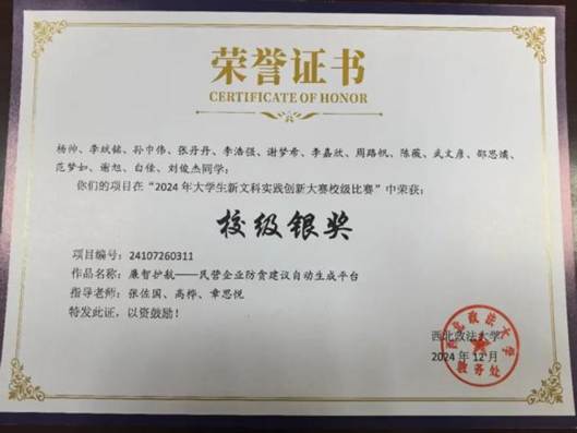 但是,困难只是暂时的考验。在我一筹莫展之际,生活委员转发的资助政策让我心头一松。我满怀希望提交了申请材料,经过班级评议小组评议、辅导员审核、学院审核、学校审核等一系列严格的评审,我最终获得了受资助资格。这让我内心感到十分的温暖,不仅是钱财上的支持,学校和国家的关怀和帮助更加让我感动不已。同时,辅导员向我介绍了国家励志奖学金。了解到国家励志奖学金是为奖励品学兼优的家庭经济困难学生设立的专项资助,既注重学业表现,更强调励志精神与道德品质后,我鼓起勇气提交了申请。在学院公开公平公正的评审流程中,最终成功斩获这一荣誉。这份奖励不仅极大缓解了我的经济压力,让我能够卸下包袱、全身心投入学习与实践,更让我深切感受到了国家和学校的关怀与期许,这份认可成为我前行路上最珍贵的动力。紧接着荣获三好学生称号后我更加确信,唯有脚踏实地、奋勇争先,才能不负青春韶华,不负家人期盼,不负学校、社会、国家栽培。