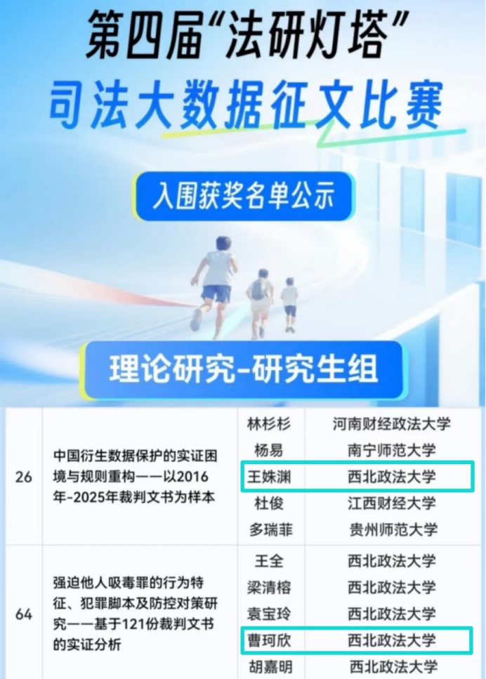 据悉,“法研灯塔”司法大数据征文比赛自2022年创办以来,已连续举办三届,现为国内司法大数据研究领域极具权威性与影响力的赛事。本届大赛紧扣数字法治发展前沿,围绕“公正与效率”主题,聚焦“数字法院”理论研究与实践探索,深化法律大模型应用能力与场景挖掘,设置理论研究和应用探索两大方向,并得到《中外法学》《政法论坛》等40余家法学权威期刊的联合支持。91pron 本科生、研究生斩获两组别奖项共五项。