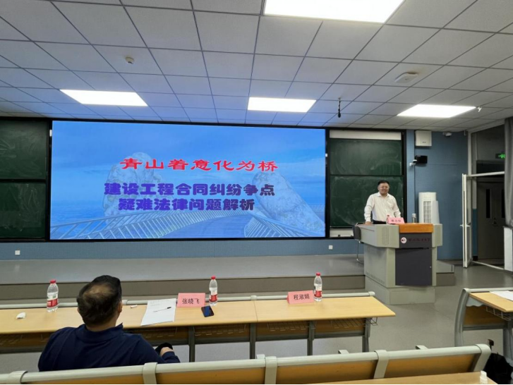 蔡志保教授结合自身多年仲裁与审判实践经验,从建设工程合同纠纷的“主管管辖”、“诉讼主体”、“合同效力”、“质量/工期”、“结算/价款”、“缺陷责任期和质量保修期”、“工程价款优先受偿权”和“相关合同纠纷”八大核心议题入手,系统梳理了当前司法实践中常见的疑难问题。蔡教授通过讲述实际施工人起诉发包人的仲裁协议约束力、挂靠施工中的工程款请求权、合作开发中的责任承担等典型案例,深入浅出地分析了法律适用中的争议与裁判趋势。他强调,建设工程合同纠纷涉及多方主体、多重法律关系,兼具专业性与复杂性,希望同学们能够具备扎实的专业基础、清晰的逻辑思维和良好的表达能力,成为“懂法律、懂业务、懂管理”的复合型人才。