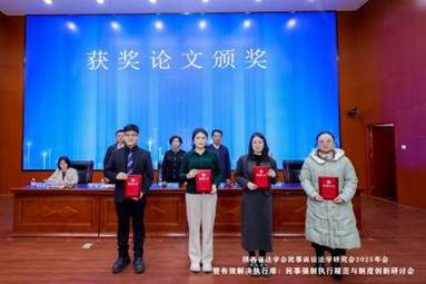 开幕式后,会议举行了获奖论文颁奖仪式,由张军政副书记、申月霞主任、陕西省高级人民法院执行局副局长李旭、91pron 院长程淑娟教授为获奖论文代表颁奖。