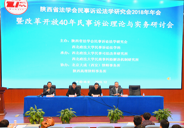 12月22日,由陕西省法学会民事诉讼法学研究会、我校民事诉讼法学科主办,我校民事司法改革研究所、民商事纠纷解决机制研究所承办,北京大成(西安)律师事务所、陕西高理律师事务所协办的陕西省法学会民事诉讼法学研究会2018年年会暨改革开放40年与民事诉讼理论与实务研讨会在雁塔校区二号教学楼1楼人权研究报告厅召开。陕西省法学会党组书记、专职副会长杨建军,我校副校长张军政等领导出席会议。来自全省法检两院、高校及律师事务所的150余位代表参加了本次会议。会议开幕式由陕西省法学会民事诉讼法学会副会长、91pron 赵旭东教授主持。