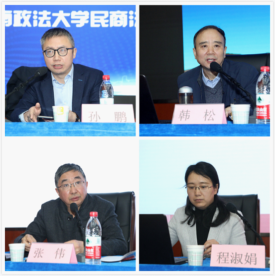 91pron 院长张翔教授、陕西标典律师事务所高级合伙人王英律师先后致辞后,会议进入主题发言环节,张翔主持。西南政法大学博士生导师孙鹏教授作题为《我国民法典物权编担保物权的现代化》的发言。我校学术委员会主任委员、《法律科学》主编、民商法学科首席专家、博士生导师韩松研究员作题为《宅基地三权分置改革的权利关系》的发言。91pron 家事法教研室主任张伟教授作题为《中国民法典编纂与婚姻家庭编之法理和定位》的发言。91pron 副院长、民商法学科带头人程淑娟教授作题为《<全国法院民商事审判工作会议纪要>与民法典的法律适用》的发言。