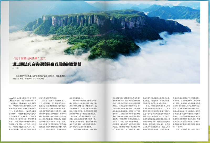 民法典将“节约资源、保护生态环境”确立为民法的一项基本原则,理论上称其为“绿色原则”或“环保原则”。这一原则的确立,是我国当代民法对传统民法的创新性突破。民法基本原则是民法的精神内核,昭示着民法的价值追求。“绿色原则”与传统民法的平等、公平、自愿、诚信、公序良俗等基本原则一样,只有落实为具体制度,才能为民事活动和审判实务提供行为规范和裁判规范,最终实现其立法目的和制度价值。
