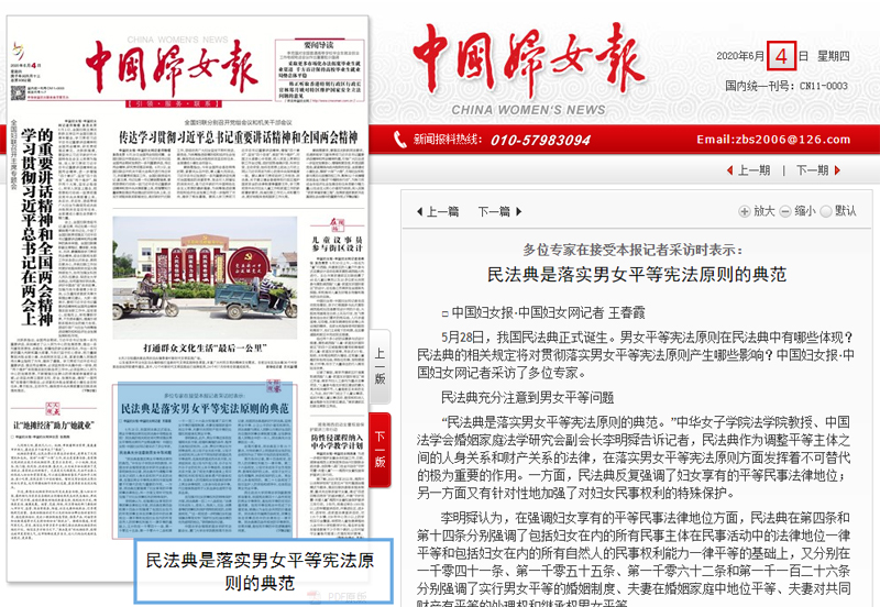 5月28日,我国民法典正式诞生。男女平等宪法原则在民法典中有哪些体现?民法典的相关规定将对贯彻落实男女平等宪法原则产生哪些影响?中国妇女报·中国妇女网记者采访了多位专家。