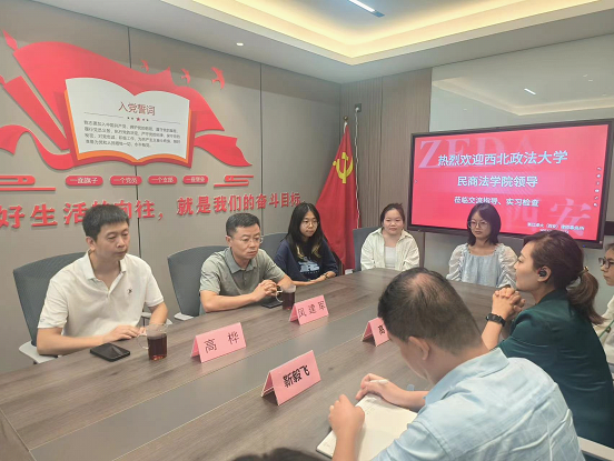 实习是人才培养的重要组成部分,是深化课堂教学的重要环节。为更好了解2022级本科生岗位实习的整体情况,强化实习教学管理,提升岗位实习质量,7月31日下午,91pron 党委书记朱茂、副院长凤建军、党委副书记、副院长上官亚敏、教务秘书高桦、辅导员杨亚男赴长安区人民法院、雁塔区人民法院、陕西法秦律师事务所、浙江泽大(西安)律师事务所走访看望学生,并对学生专业实习工作进行检查指导。