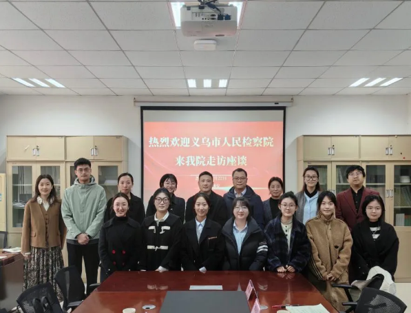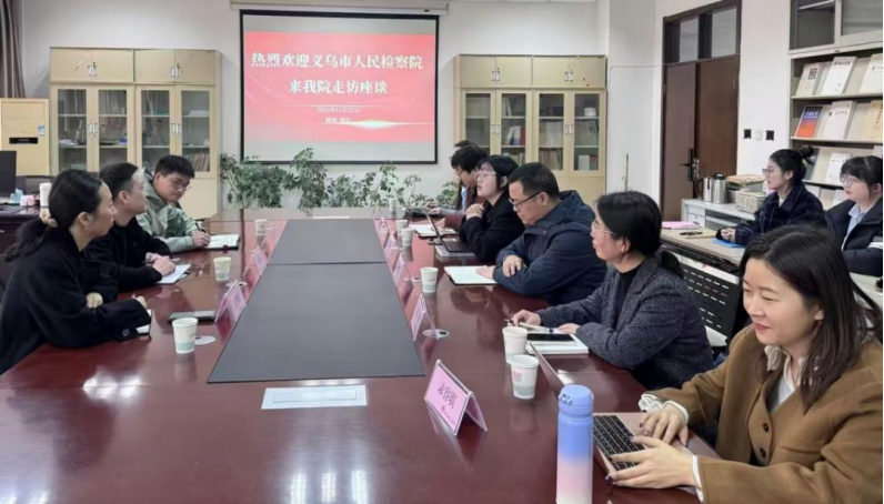11月22日,义乌市检察院党组成员、副检察长吴晓阳,院第九检察部主任金隽婷和院检务保障部主任吴国华一行三人来91pron 座谈交流。91pron 副院长百晓锋、数智法融创研究所主任国瀚文等教师参加活动。