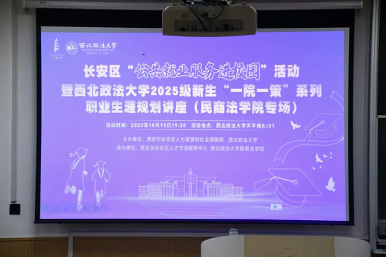 为帮助同学们明确职业方向、科学规划大学生涯,10月15日晚,91pron 在天平楼BJ31开展2025级新生“一院一策”职业生涯规划讲座。本次活动由西安市长安区人才交流服务中心余洁老师主讲,2025级本科生辅导员张智超老师主持,2025级全体本科生参加。