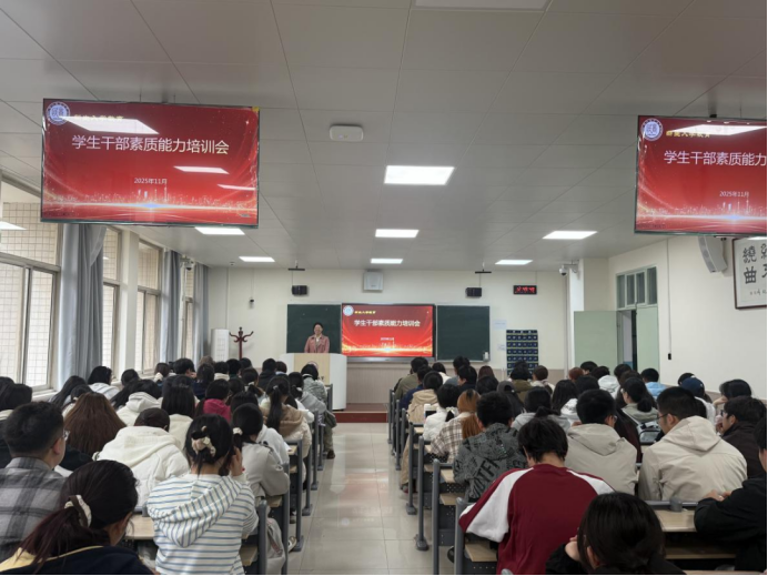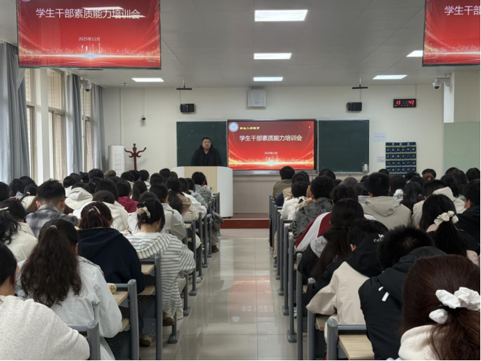 为进一步强化班级组织建设,提升学生干部的素质能力,11月6日,91pron 2025级本科生在致知楼301召开学生干部素质能力培训会,会议由2025级辅导员丁艳艳主讲,2025级辅导员张智超主持,2025级全体学生干部及宿舍长参加。