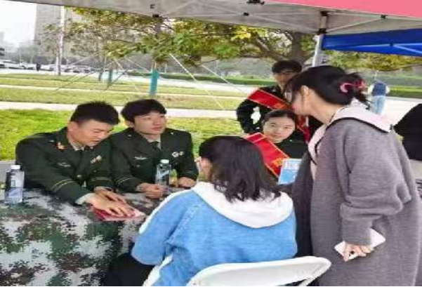 活动现场,征兵工作人员围绕应征条件、报名流程、体检政考、学业补偿、退役安置、就业优待等毕业生重点关注内容进行细致讲解,全面介绍大学毕业生入伍的优惠政策与发展路径。针对同学们提出的服役规划、待遇保障、升学就业扶持等问题,工作人员逐一耐心解答,用翔实政策与鲜活案例,帮助大家明晰入伍优势、坚定报国志向。