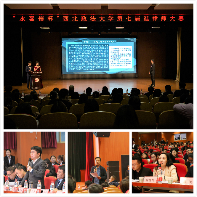 11月22日晚7点,“永嘉信杯”91pron 第七届准律师大赛决赛在我校长安校区成功举办。本次大赛由永嘉信律师事务所独家冠名,我校教务处及91pron 主办,91pron 团委、学生会、《西部法苑》编辑部承办,全省12家知名律所协助参与。我校副校长王健、张军政出席活动,全省律师代表、我校学工部、教务处负责老师、91pron 党政领导及学生共500多人观摩了比赛。陕西省电视台、西安市电视台、今日头条、人民网、凤凰网、大公报等多家媒体对比赛进行报道,今日头条全程网络直播。