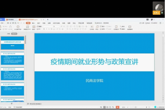 宣讲会上,两位老师结合疫情期间党中央、国务院和省委、省政府关于稳就业做出的相关决策部署及我校的各项就业工作安排,围绕就业工作进行了具有针对性的讲解,着重强调了疫情期间求职的注意事项,并就疫情影响下的就业形势为毕业生做了分析,尤其是针对招聘单位的招聘需求、招聘方式、人才能力等方面进行了全面梳理。互动环节,老师们针对同学们提出的如毕业生户口迁移、三方协议签订等问题进行了系统的答疑。