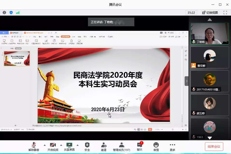 为进一步推进2020年度本科生实习工作,6月23日下午,91pron 2020年度本科生实习动员会通过“腾讯会议”平台举办。学院领导班子成员、2017级辅导员、2018级辅导员、行政人员及部分学生参与会议。会议由2017级辅导员丁艳艳主持。